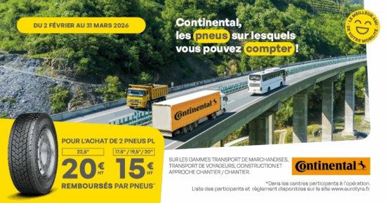 Promotion pneus poids lourds Continental Du 1er septembre au 31 octobre 2025, pour l’achat de 2 pneus poids lourds Continental, profitez […]